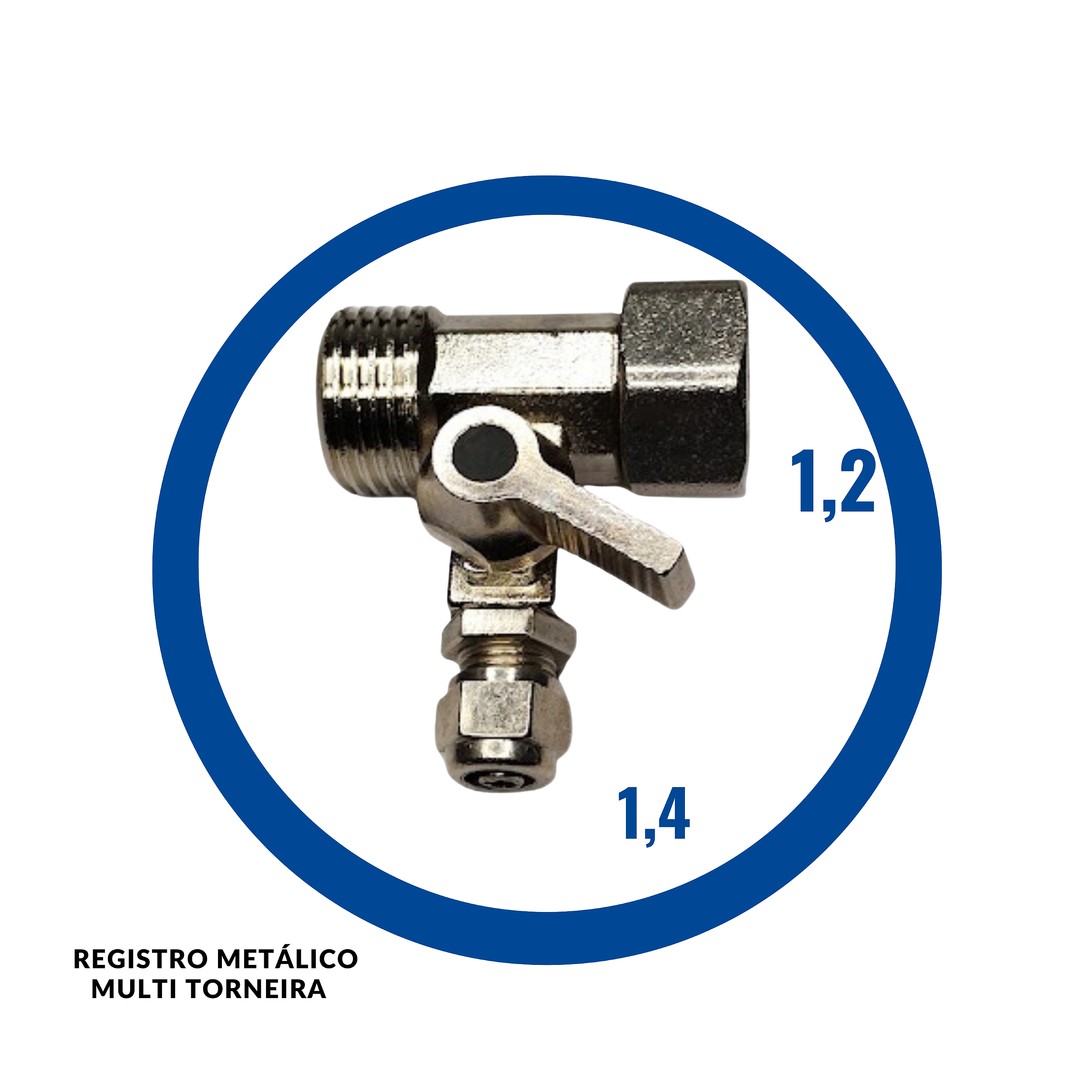 Registro Metálico Multi Torneira RM 1/2" – Saída Rosca Fêmea 1/2" com Engate Rápido 1/4" para Purificador